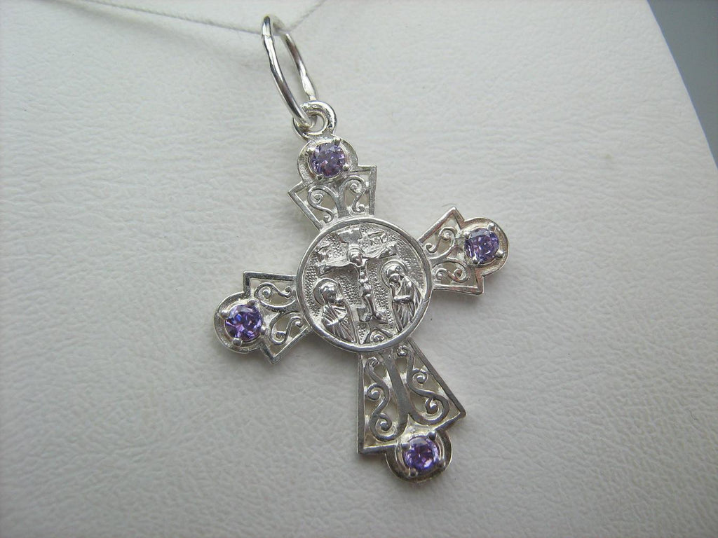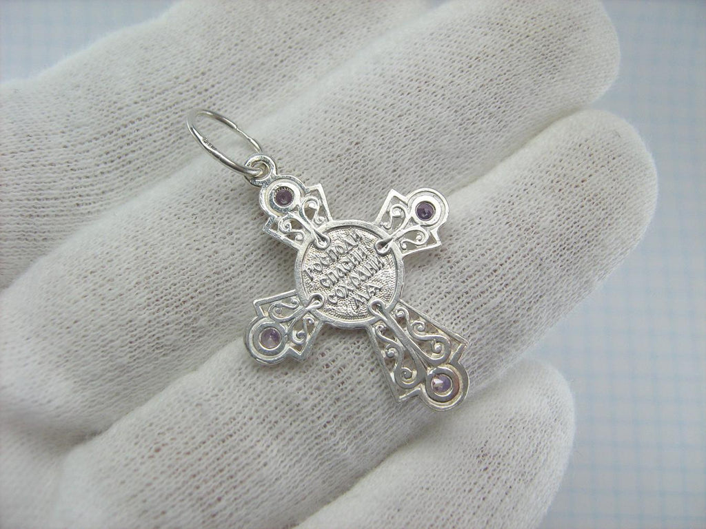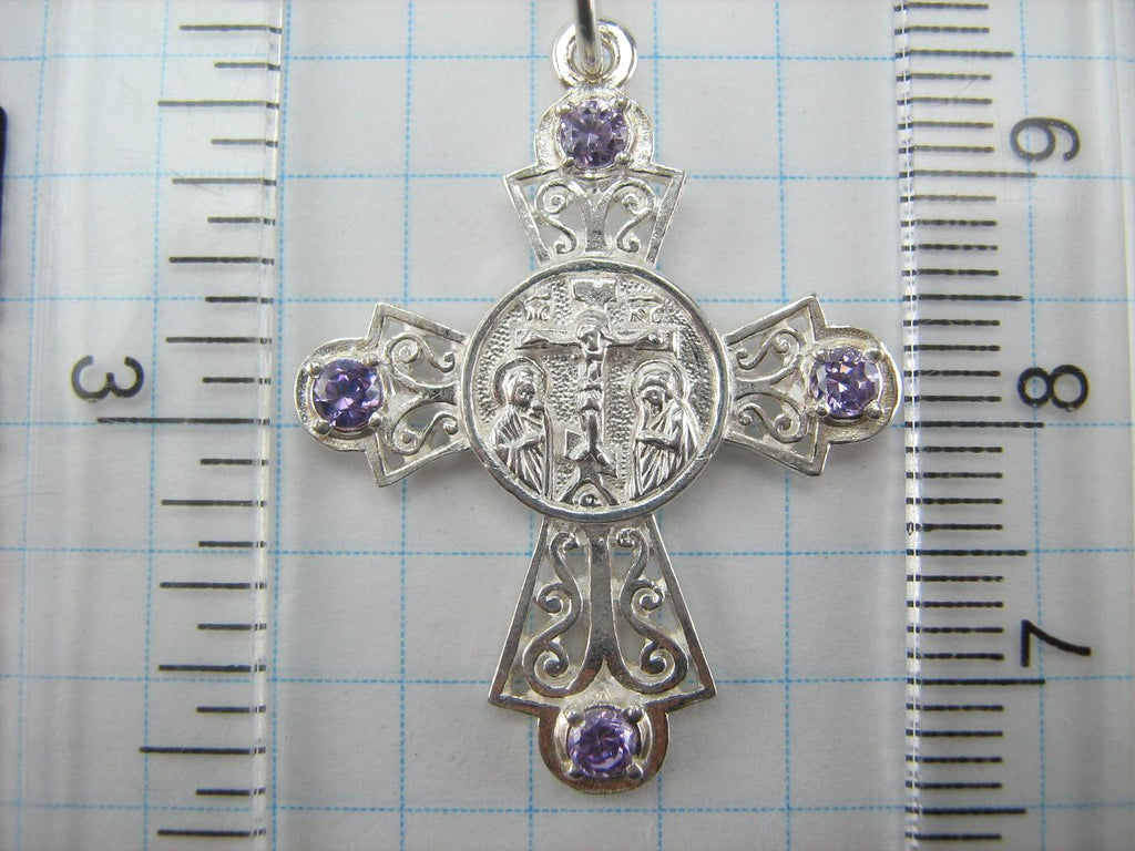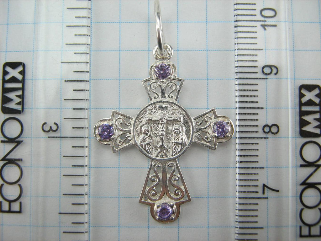 NEW SOLID 925 Sterling Silver Cross Pendant Necklace Jesus Christ Crucifix Mother of God Mary Magdalene Cyrillic Scripture Prayer Text Openwork Filigree Pattern Christian Church Fine and Faith Jewelry from Ukraine
