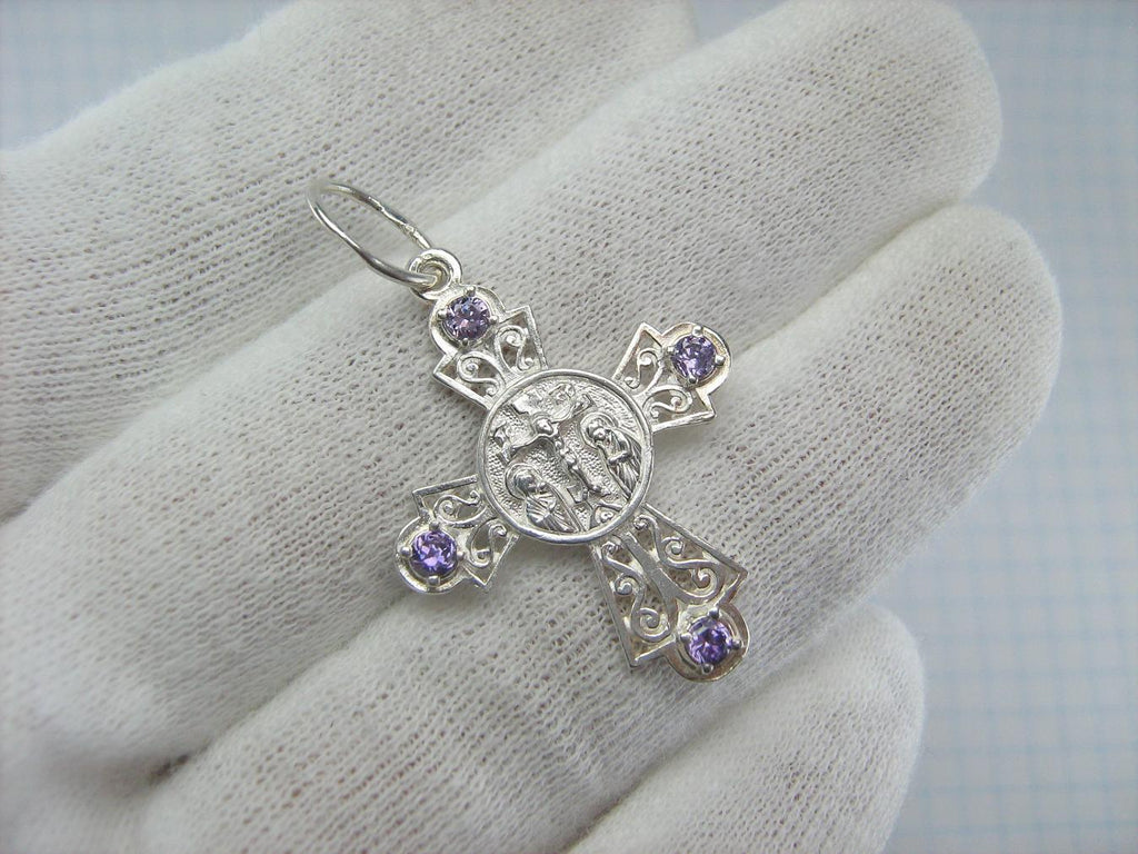 925 Sterling Silver Cross Pendant Prayer Jesus Christ Crucifix Purple CZ Stones New Christian Church Fine and Faith Jewelry CR000868