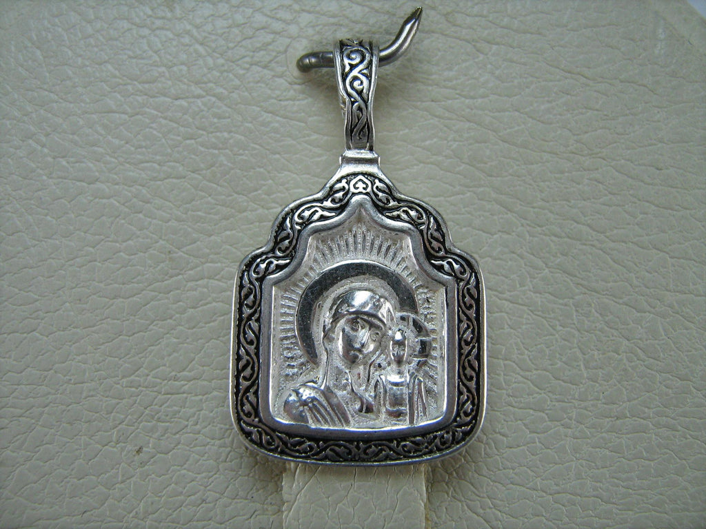 925 Sterling Silver Icon Pendant Medal Mother of God Kazanskaya Filigree Frame Vintage Christian Church Fine Faith Jewelry MD000733