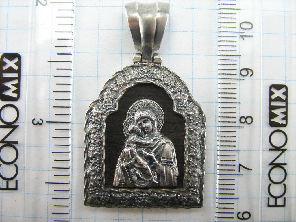 925 Sterling Silver Icon Pendant Mother of God Mary of Vladimir Tenderness Wood Vintage Christian Church Fine Faith Jewelry MD001610