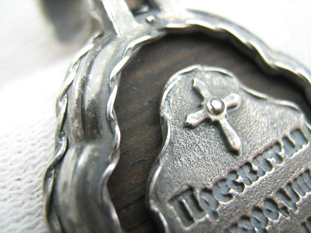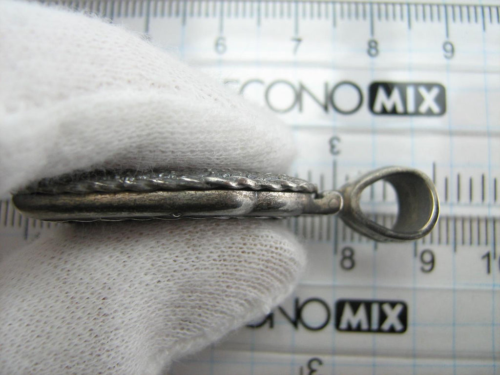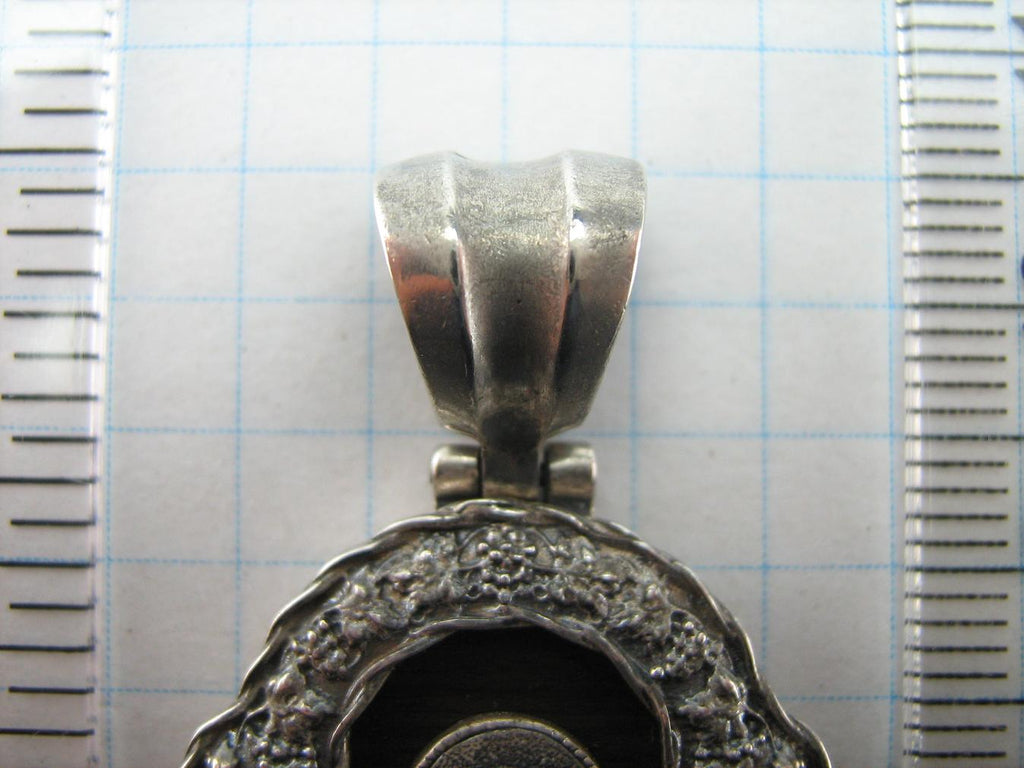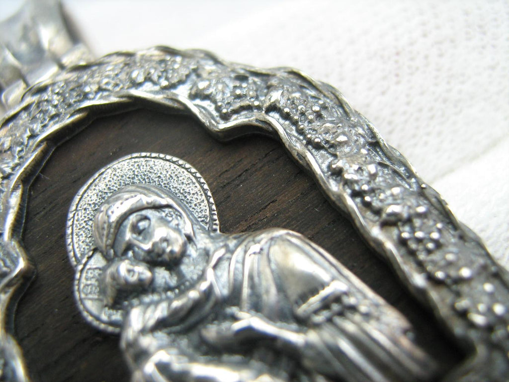 SOLID 925 Sterling Silver Icon Pendant Medal Theotokos of Vladimir Mother of God Saint Mary Blessed Virgin Eleusa Tenderness Jesus Christ Cross Oxidized Grapevine Pattern Manual Work Christian Church Fine and Faith Ukrainian Jewelry