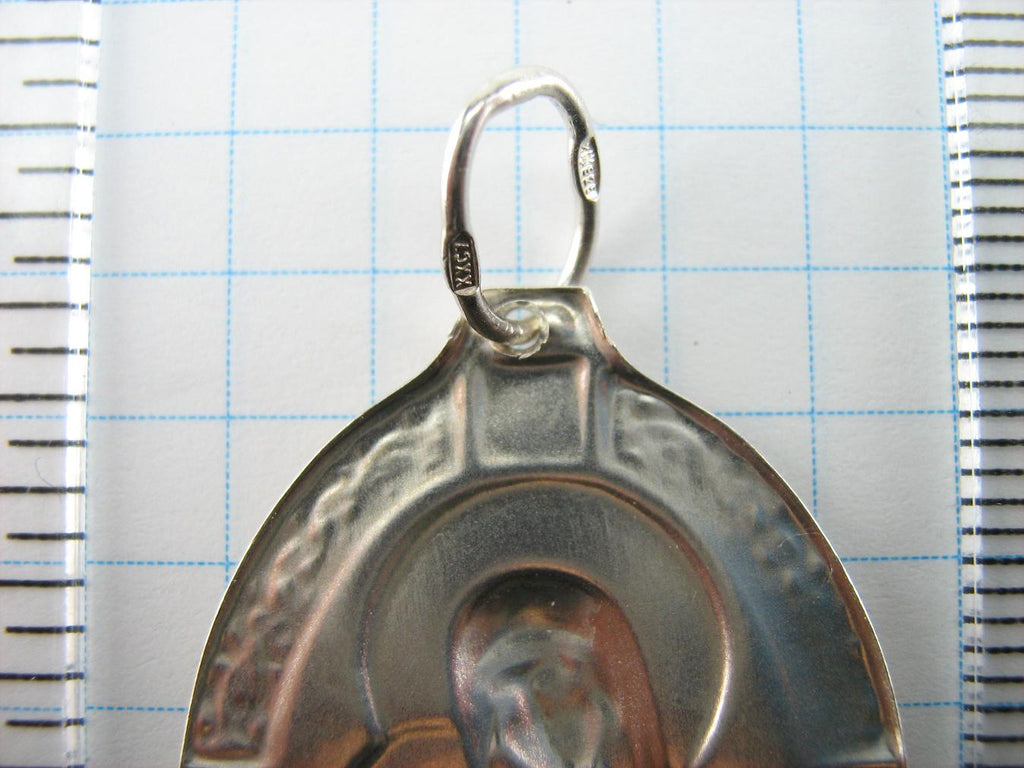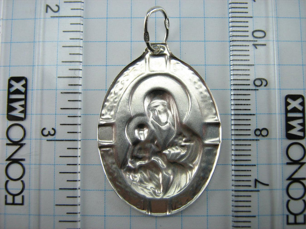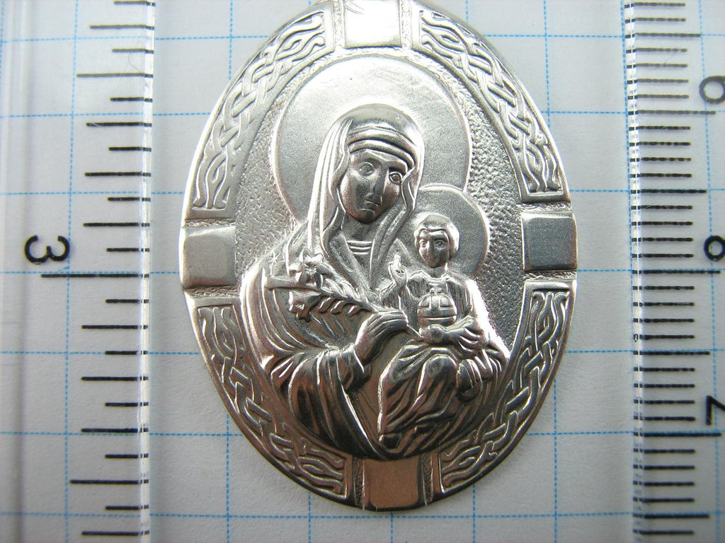 SOLID 925 Sterling Silver Icon Pendant Necklace Medal Mother Mary Unfading Flower Eternal Bloom Saint Mary Jesus Christ Religious Patroness Amulet Vintage Filigree Celtic Knots Pattern Oval Frame Large Big Light Christian Church Fine and Faith Jewelry from Ukraine